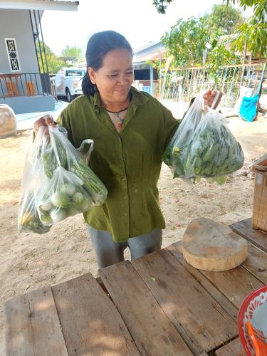 แปลงผักปลอดสารพิษตามวิถีเศรษฐกิจพอเพียงของกลุ่มสตรีบ้านเสาใหญ่
